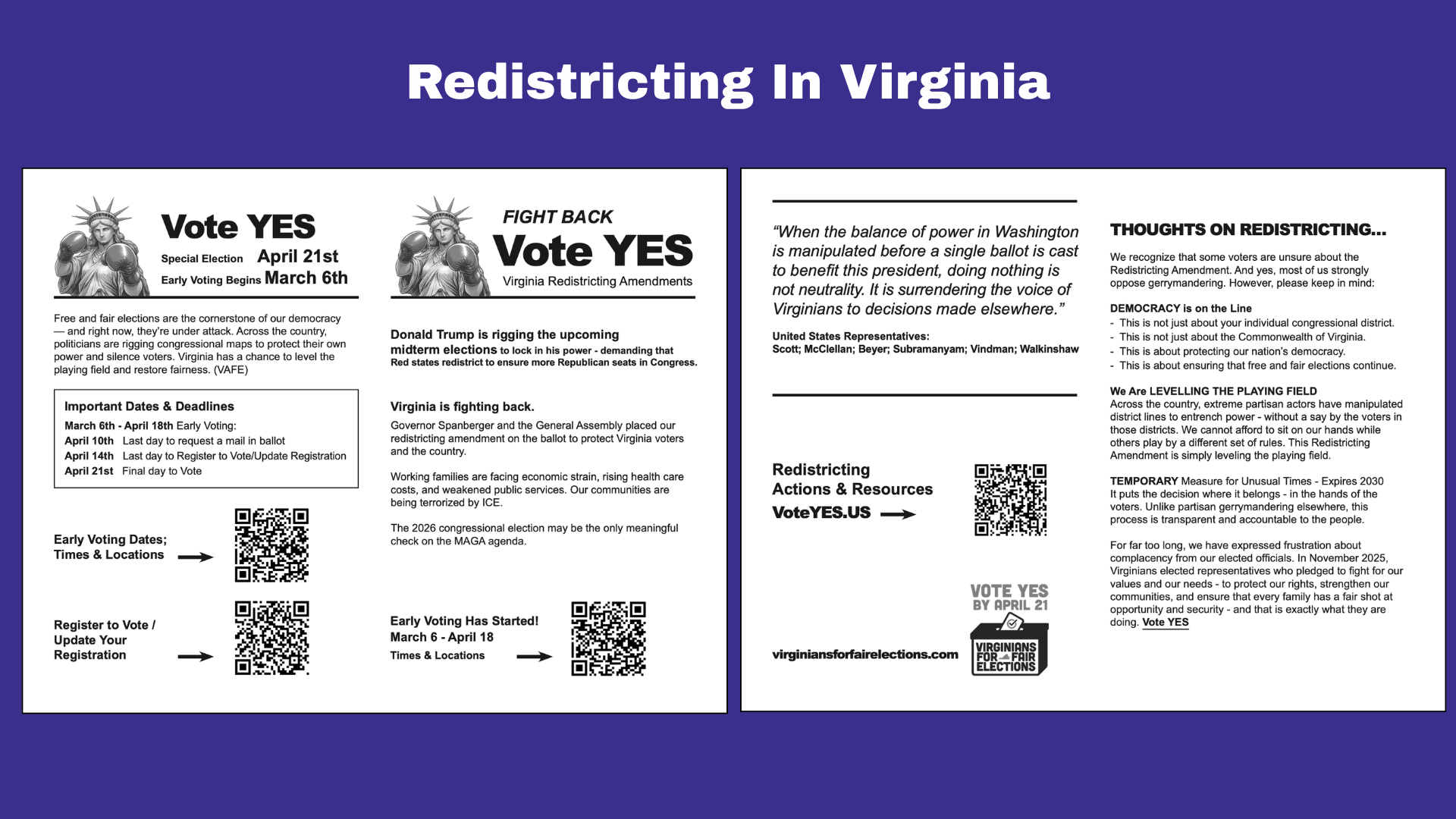 A grassroots organization whose mission is to connect with others in Virginia and beyond for the purpose of promoting the democratic values of equality, justice, and human rights.